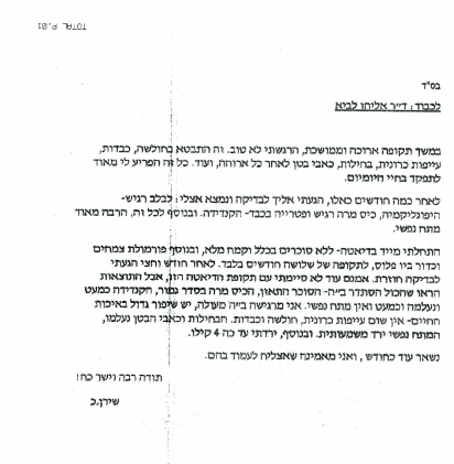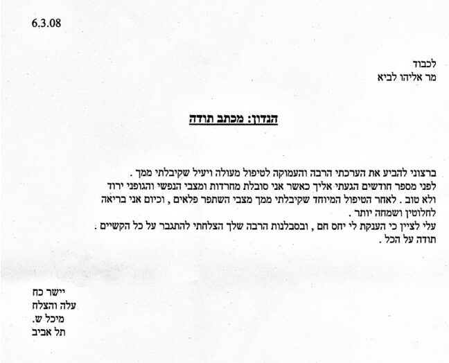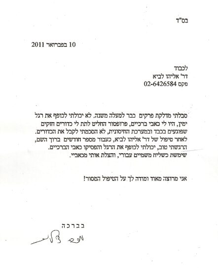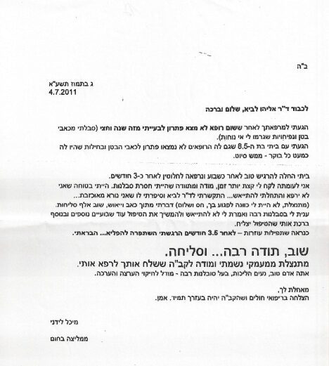 עיון במכתבי תודה והערכה לד"ר לביא, המכתבים מסווגים לפי לפי קטגוריה ובעיות רפואיות. לחצו על הקטגוריה/בעיה וקראו.
